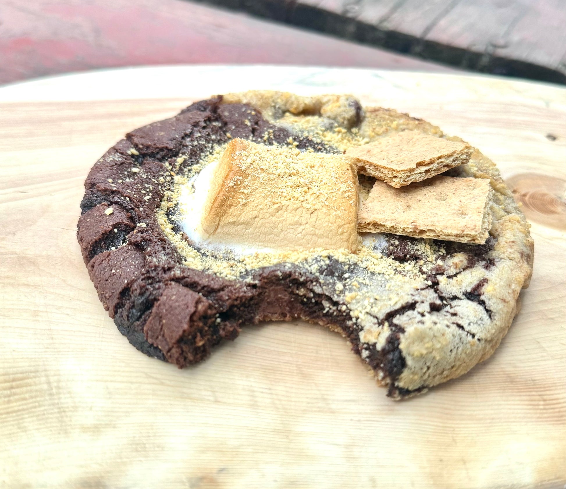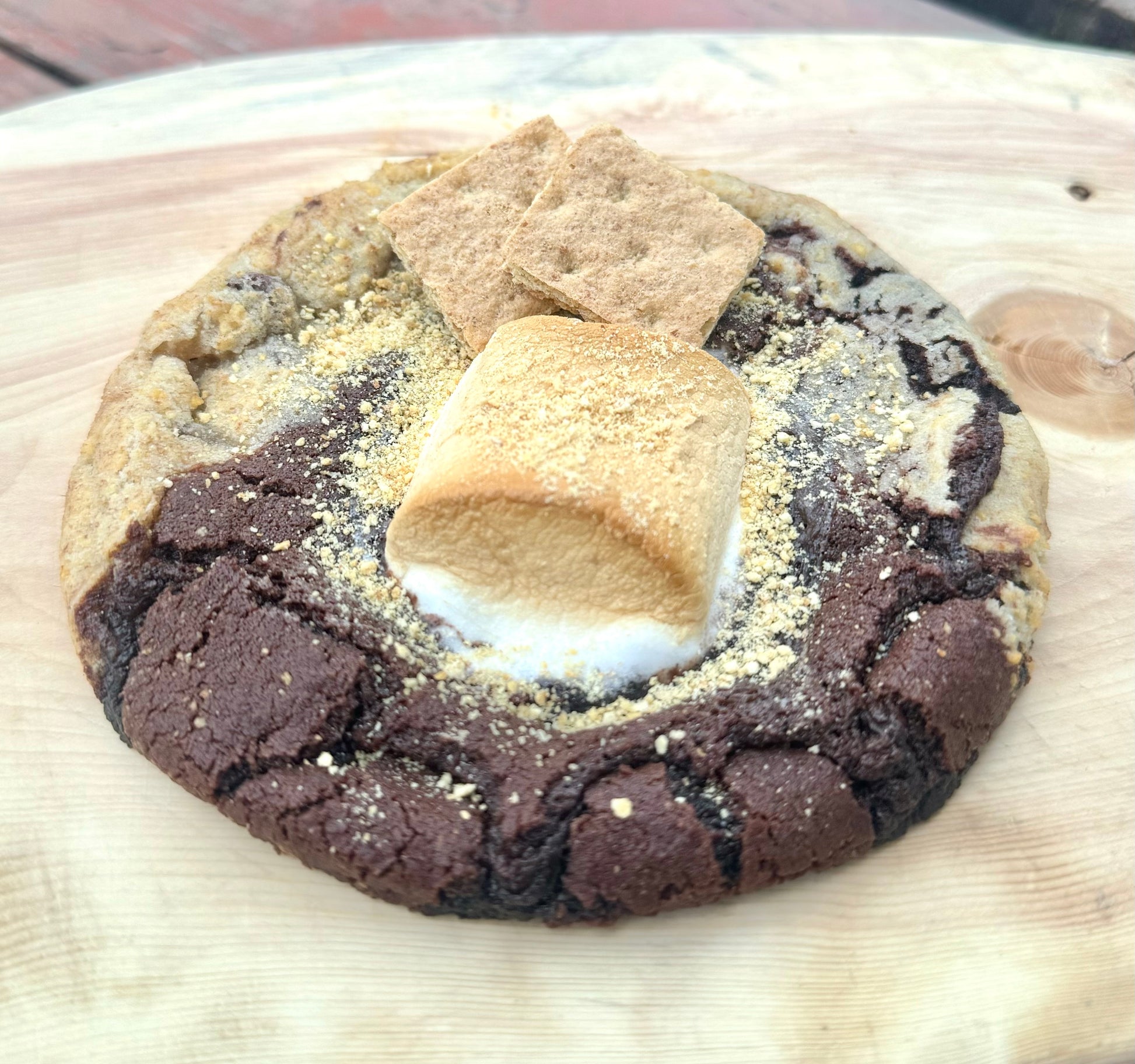 • This recipe is for a rich chocolate brownie swirled with a vanilla chocolate chip cookie rolled in graham cracker crumbs. Baked with a toasty marshmallow and garnished with additional graham cracker crumbs