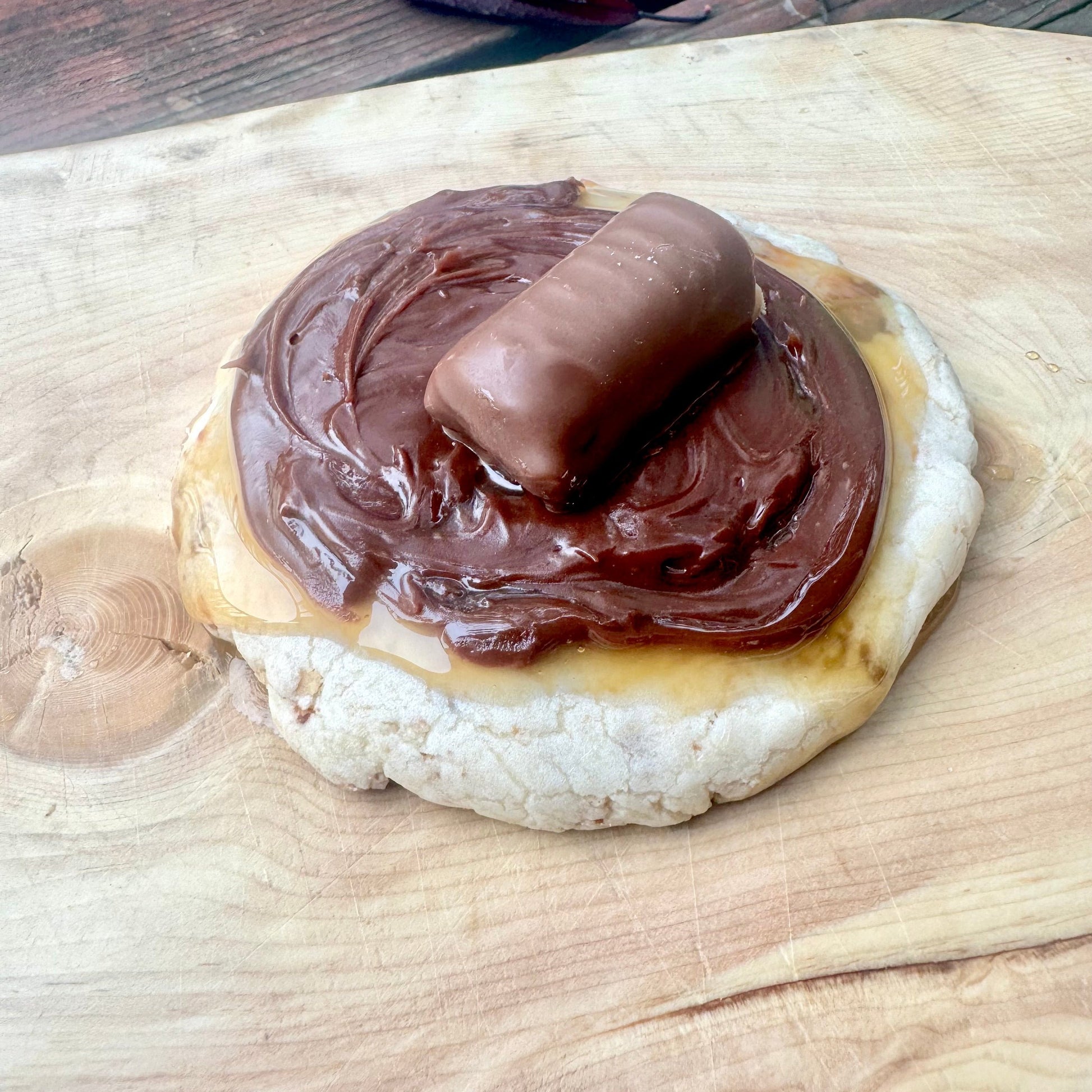 • This recipe is for a buttery shortbread with chopped Twix cookie base, topped with a delicious caramel and chocolate ganache, finished with a Twix garnish